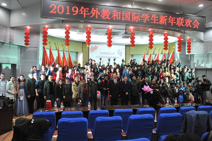 12月24日晚,由国际教育学院、国际合作交流处主办的“河南理工大学2019年外教和国际学生新年联欢晚会”在力行楼学术报告厅举办。副校长赵俊伟出席晚会,国际教育学院、国际合作交流处以及相关教学学院的教师参加了晚会。来自美国、孟加拉、老挝、巴基斯坦、印度、坦桑尼亚、埃塞俄比亚、赤道几内亚等22个国家的国际学生、外籍教师和部分中国学生代表近300人欢聚一堂,喜迎新年。