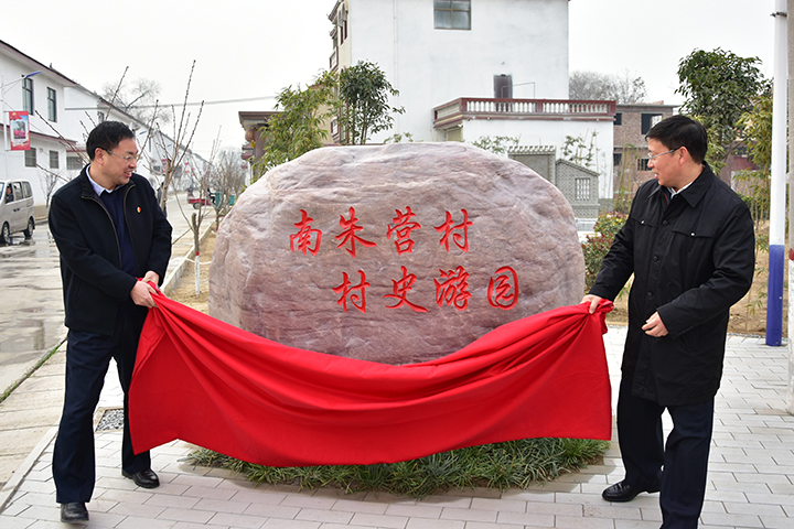 杨小林与张红卫共同为我校捐建的南朱营村村史游园揭幕