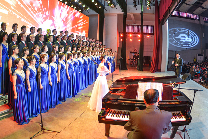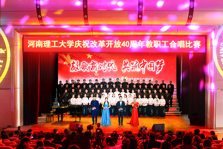 为庆祝改革开放40周年,讴歌我校教职工圆梦新时代的豪情壮志,12月4日下午,由校工会、校团委、宣传部和音乐学院联合主办的河南理工大学庆祝改革开放40周年教职工合唱比赛在我校南校区小礼堂举行。校党委书记邹友峰,校长杨小林,校党委副书记安士伟,副校长张锟、翟传森、解伟、赵同谦,校工会主席翟耀南出席比赛,各学院及相关职能部门负责人与近千余名师生共同观看了比赛。来自校工会和音乐学院的9名教师组成了比赛的评审委员会。