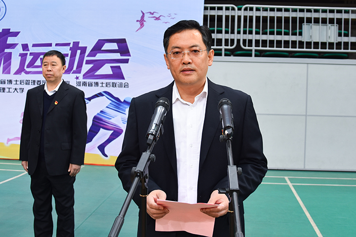 11月8日,运动会开幕式在我校体育馆举行。省博士后管理委员会办公室主任、省人力资源社会保障厅博士后与留学人员工作处处长张成,副处长王光晓,校长杨小林出席。副校长解伟主持开幕式。