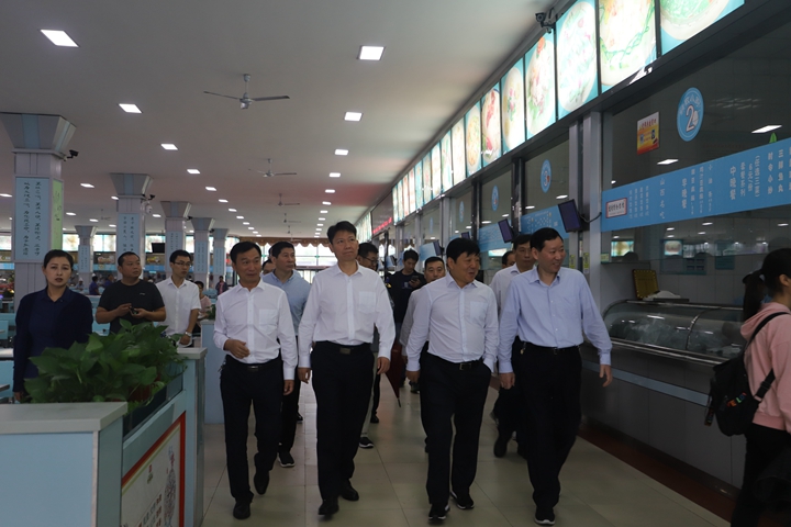 9月19日上午,焦作市副市长武磊,市政府食品安全办公室和市食品药品监督管理局、市教育局、市工商局等相关职能部门负责同志一行,莅临我校学生餐厅就“双节”前食品安全工作调研指导,副校长翟传森,后勤管理处(集团)相关部门负责同志陪同。