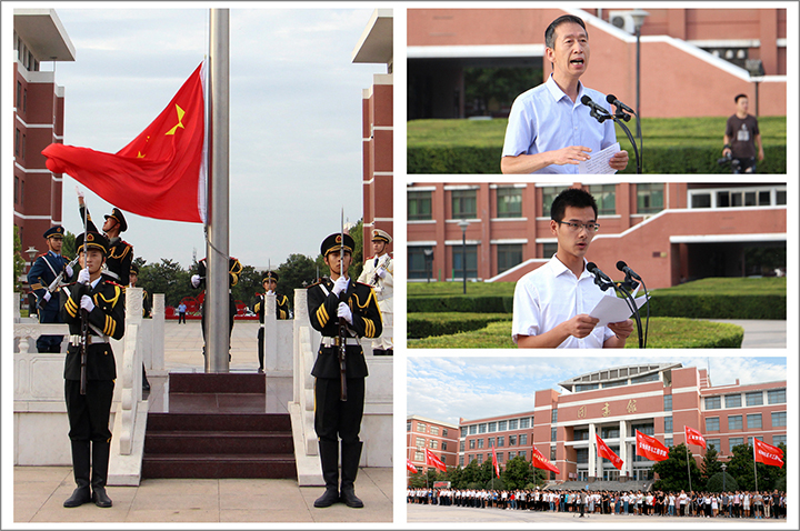 9月3日清晨,我校在南校区中心广场隆重举行新学期开学暨中国人民抗日战争胜利纪念日主题升国旗仪式。校领导邹友峰、杨小林、安士伟、张锟、陈自录、赵俊伟、翟传森、解伟、赵同谦、翟耀南出席。全体中层干部、各学院专兼职辅导员和学生代表3000余人参加了升旗仪式。仪式由学生工作部(处)部(处)长黄保金主持。