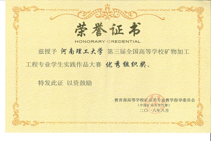 我校化工学院院长谌伦建、矿物加工工程教研室支部书记邢宝林、化工学院教学秘书程敢参加了会议,会上邢宝林做了“基于OBE的矿物加工工程专业人才培养模式改革”的报告。同时对来自30多所高校的213件学生实践作品进行了评选,共评选一等奖作品26项,二等奖作品45项,三等奖作品104项。我校矿物加工工程专业9件学生实践作品获奖,其中获一等奖1项、二等奖3项、三等奖5项,同时我校获得优秀组织奖。
