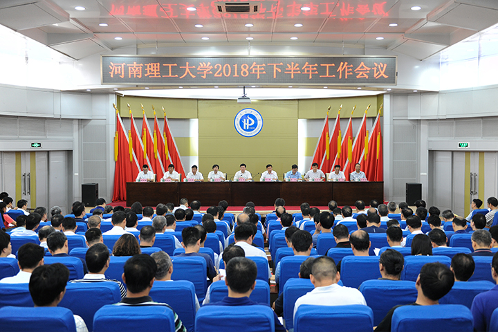 9月2日上午,学校2018年度下半年工作会议在力行楼学术报告厅召开。会议回顾总结了学校暑假期间开展的主要工作,对今年下半年重点工作做出全面部署。会议要求全校广大干部和师生员工以习近平新时代中国特色社会主义思想为指导,深入贯彻落实党的十九大精神,落实省委十届六次全会暨省委工作会议精神,紧紧围绕学校第二次党代会确定的目标任务,不忘初心,砥砺奋进,以更加宽广的视野谋发展,以更加昂扬的斗志解难题,以更加务实的作风干事业,奋力加快国内一流特色高水平大学建设进程,以一个个出彩绘就学校改革发展的浓墨重彩,共同开创河南理工大学更加美好的未来。