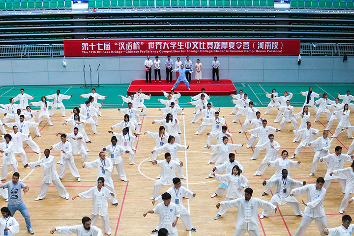 徐恒振致辞。他指出,河南是中华民族和华夏文明的重要发祥地,是世界华人宗祖之根,中国姓氏的重要发源地,“老家在河南”已经成为海内外华人的共识。焦作市历史文化厚重,阴阳互补、刚柔相济的陈氏太极拳300多年前发源于这里的陈家沟,承传至今,远播海外,堪称我国民族武术奇葩和世界文化瑰宝。国家汉办精心安排此次“汉语桥”河南段活动,可谓用心良苦,也是对我们工作的充分肯定。他强调,这次夏令营既有丰富的太极拳体验教学,又有云台山红石峡和陈氏太极拳发源地陈家沟的实地考察,主题突出、效果明显,让大家切身体会了太极拳文化的博大精深和无穷魅力,加深了对中原文化乃至中华文化的了解。他希望同学们将夏令营的所学、所见、所闻、所感,分享给自己的同学、亲人和好友,让更多人了解中国和中华文化,做中国与世界人民友好交流的积极倡导者。