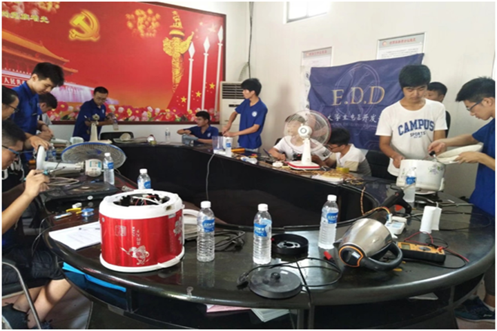 维修开始前,实践团以广播、微信等多种渠道宣传了维修活动,吸引了不少村民将家中坏掉的电器设备拿来村委会进行维修。维修期间,村民需提前预约电器,登记相关信息,以便实践团队联系。实践过程中,村民送来的电器有小冰箱、电风扇、吹风机、电子秤、电饭锅、饮水机、电磁炉、音响等各种家用电器。这些电器存在线路老化、电机损坏、线路短接、电容爆裂、电路松动等问题。由于部分村民的家用电器不能移动,队员们还亲自上门到村民家中进行义务维修。为高效完成维修工作,队员们采取中午轮班制休息,实践团队员们团结协作,齐心协力,合理分工,最终攻克各种维修问题,为多位村民修好了电器,得到了村民的感谢和村支书的赞扬。