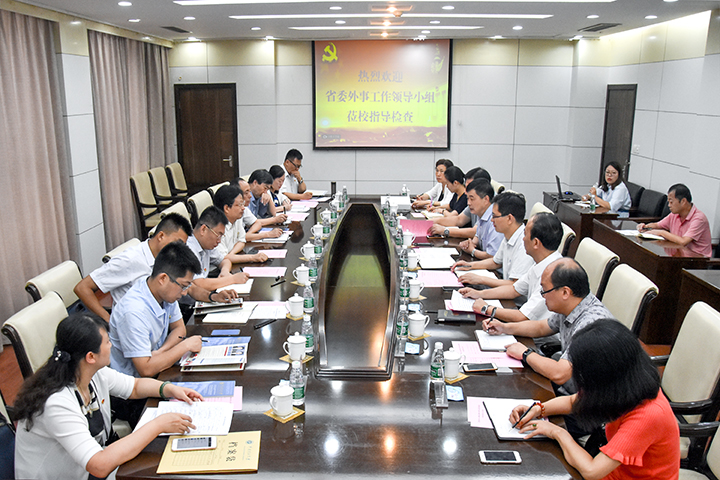 7月18日,以省委外办、省外侨办党组成员、副主任王自文为组长的省委外事工作检查组一行莅临学校检查指导工作。学校在行政楼二楼会议室举行汇报会,副校长赵俊伟出席并主持会议。