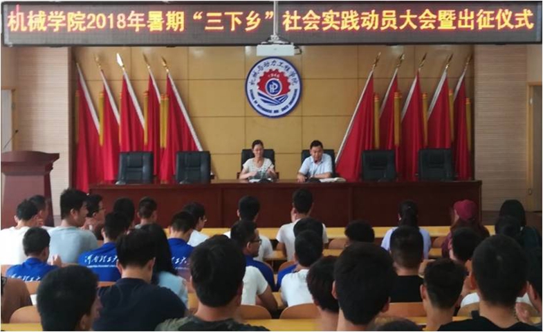 暑期“三下乡”社会实践是大学生在走向社会的重要锻炼环节。此次出征仪式,充分调动了同学们投身社会实践的积极性,百余名实践队员即将奔赴我校周边地区开展暑期社会实践调研和走访工作,为全方位、深层次提高我院大学生社会实践活动质量提供了整体指导。(机械学院)
