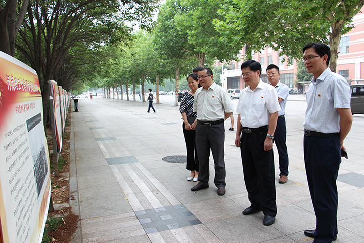 邹友峰与支部党员一起参观了学校第一次党代会以来的发展成就展,重温了学校历次党代会的光辉历史,并与支部成员亲切座谈,说成就、话美好、谈未来。