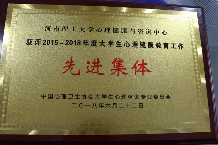 会上,大学生心理咨询专业委员会对全国151家大学生心理健康教育工作先进集体和305名优秀工作者进行了表彰。我校心理健康教育与咨询中心获评2015-2018年度大学生心理健康教育工作先进集体,潘子彦、胡利霞2位老师荣获大学生心理健康教育工作优秀工作者。我省获此殊荣的还有郑州大学、河南大学和河南工业大学。