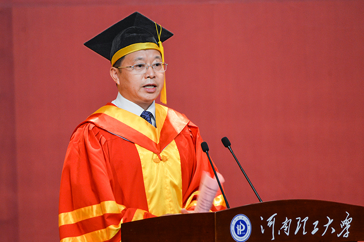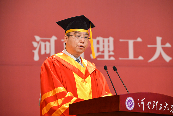 毕业典礼在庄严的国歌声中拉开帷幕。典礼上,校长杨小林发表讲话,他首先代表校党委、校行政和全校师生向顺利完成学业的677名博士、硕士研究生表示热烈的祝贺。随后,他回顾了我校研究生工作取得的长足进步,充分肯定了2018届毕业研究生在校期间取得的成绩和荣誉。最后,杨小林向毕业研究生提出了三点希望:一是要坚定信念、胸怀理想,不辜负祖国重托。他告诫同学们要胸怀大志,把个人成长成才,融入到国家进步和民族振兴之中,用“青春之理想、青春之活力、青春之奋斗”,为民族复兴铺路架桥,为祖国建设添砖加瓦。二是要锐意进取、开拓创新,不辜负伟大时代。大学肩负着为国家科技创新培养人才,为国家创新发展积聚力量的使命。他结合2018届毕业研究生取得的成绩,希望同学们带着在母校练就的本领,早日成为敢于创新、善于创新、享受创新的先锋,去引领时代发展进程。三是要牢记使命、勇于担当,不辜负人民期望。他鼓励同学们向理工大办学史上的优秀学子学习,继续传承和发扬理工精神,担当历史使命,勇挑责任重担,做引领潮流的时代先锋,在激扬青春、开拓人生、奉献社会的进程中,不断书写出无愧于人民期望的壮丽篇章。