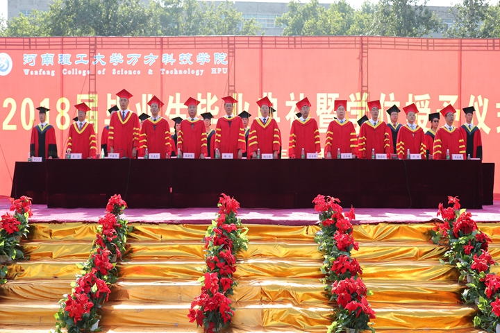 庄重的升国旗仪式后,该院副院长邓乐宣读学院关于授予2018届毕业生毕业证、学位证的决定,该院党委副书记尹铁军宣读河南省教育厅、万方科技学院关于表彰2018届优秀毕业生的决定。随后为荣获省级优秀毕业生、学院优秀毕业生称号的毕业生代表分别颁发了毕业证书和荣誉证书。毕业生代表向四年来培养自己成长成才的教师和养育自己长大的父母亲深情致谢并送上鲜花祝福。毕业生代表秦泰安、毕业生家长代表马胜辉、教师代表杨扬先后发言,表达了对学院的感激之情和对2018届毕业生的美好祝愿。