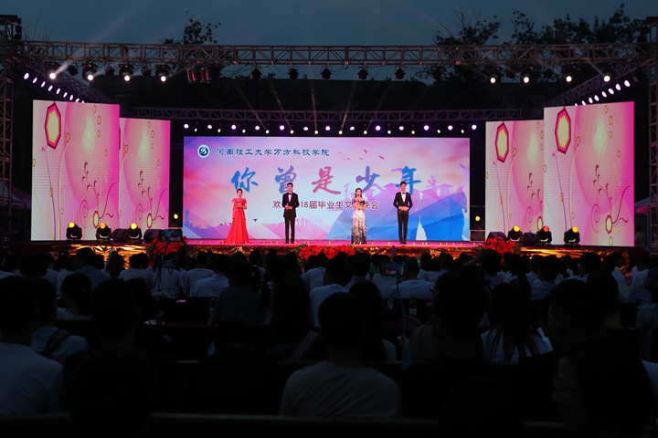 6月10日晚,“你曾是少年”欢送2018届毕业生文艺晚会在南运动场举行。校党委副书记安士伟,副校长解伟,原副校长、万方科技学院原院长王裕清,校学生处处长黄保金,校团委书记茹艳,校长办公室副主任刘文军,教务处副处长茅艳,国资处副处长解东辉,物电学院党委副书记王丙新,工商学院党委副书记尚敏,体育学院党委副书记张洪良,学院党政负责人张新民、郑伦仁、王海星、邓乐、尹铁军及各单位负责人与全体教职工同2000余名毕业生和在校生一起观看了晚会。