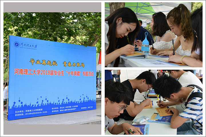 该活动为学校首次举办,由档案馆主办,学生处、材料学院、文法学院协办。档案馆为活动精心设计了纪念卡片、专用信封,限量发行400份,供毕业生写下自己对母校的深切感情、毕业感想和理想目标,还可以给十年后的自己、同学、孩子、母校等留言,也可以附上一张只属于自己大学青春的照片,签名后,装入信封,在档案馆编号缄封典藏。待毕业十年后重回母校聚会时,亲自到档案馆领取、启封、阅读和珍藏。