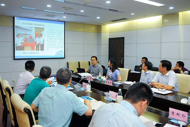 社科处处长程伟针对太行发展研究院自成立以来的建设成效、存在的主要问题及未来工作打算做了详细汇报。河南省能源结构优化与发展政策研究项目负责人王婕、河南大气雾霾污染应急响应机制及协同治理方案项目负责人王海邻分别就承担的重大委托项目进展情况做了专题汇报。