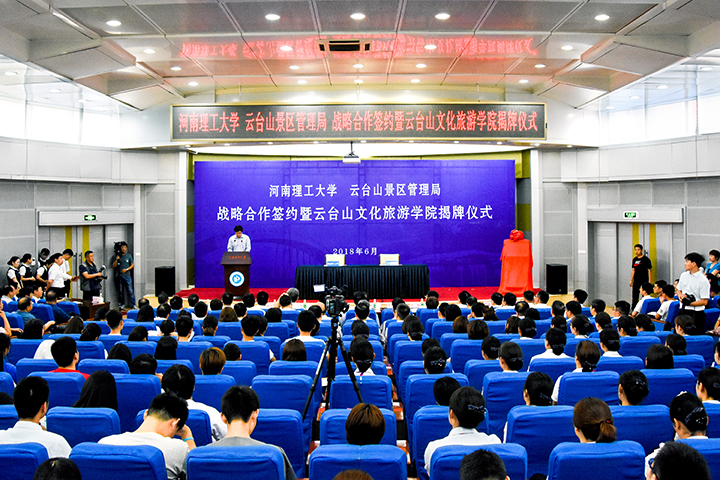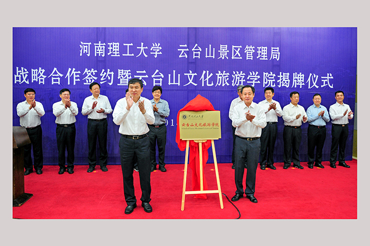 随后,焦作市委书记王小平、省旅游局局长姜继鼎,共同为河南理工大学云台山文化旅游学院揭牌。