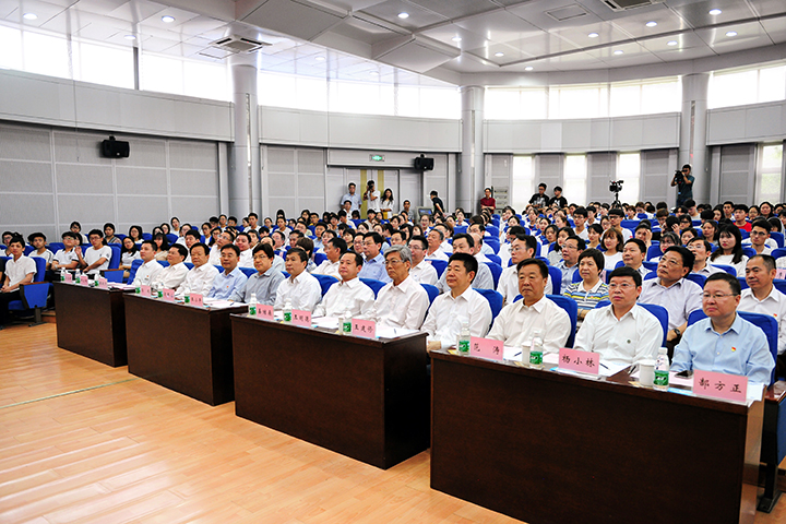 省旅游局局长姜继鼎、焦作市委书记王小平为河南理工大学云台山文化旅游学院揭牌
