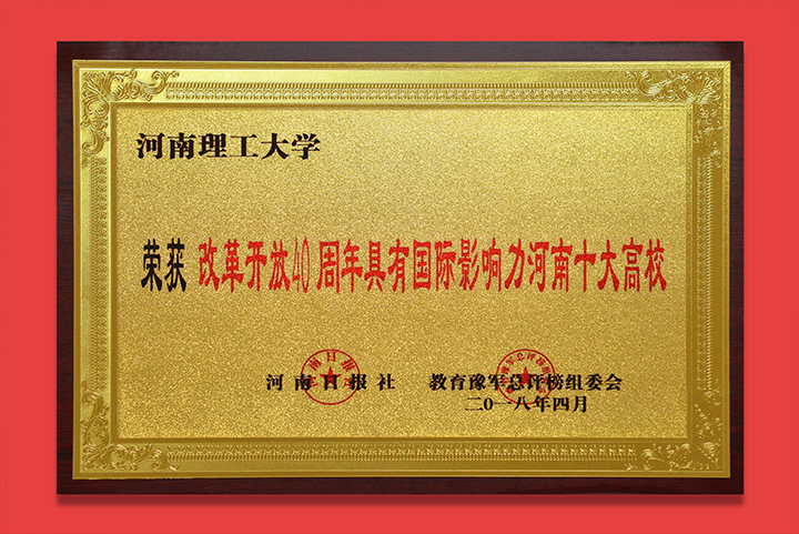 4月26日上午,“第九届河南高等教育领军高校高峰论坛”暨“改革开放40周年教育豫军总评榜”颁奖典礼在郑州举行。来自省内的80多所大中专院校的近200多名嘉宾代表参加了论坛。论坛发布了“改革开放40周年教育豫军总评榜”并进行了表彰。我校荣获“改革开放40周年具有国际影响力河南十大高校”,校长杨小林教授荣获“改革开放40周年影响河南十大教育人物”,安全学院王兆丰教授主持的科研项目“煤与瓦斯突出综合防治技术及装备”荣获“改革开放40周年影响河南十大科技创新项目”。这些奖项的获得,充分彰显了学校的社会影响力和美誉度。