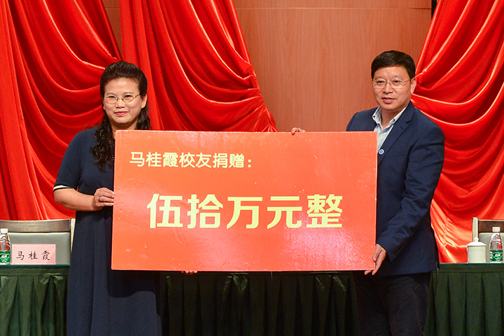 校长杨小林出席并代表学校接受校友马桂霞捐赠基金