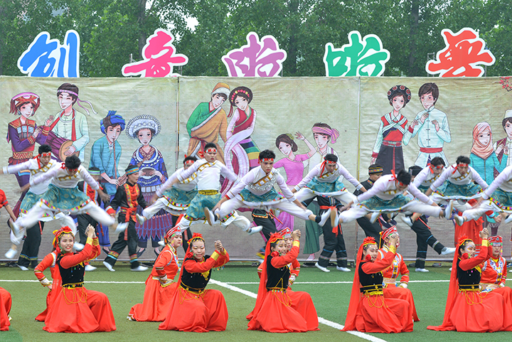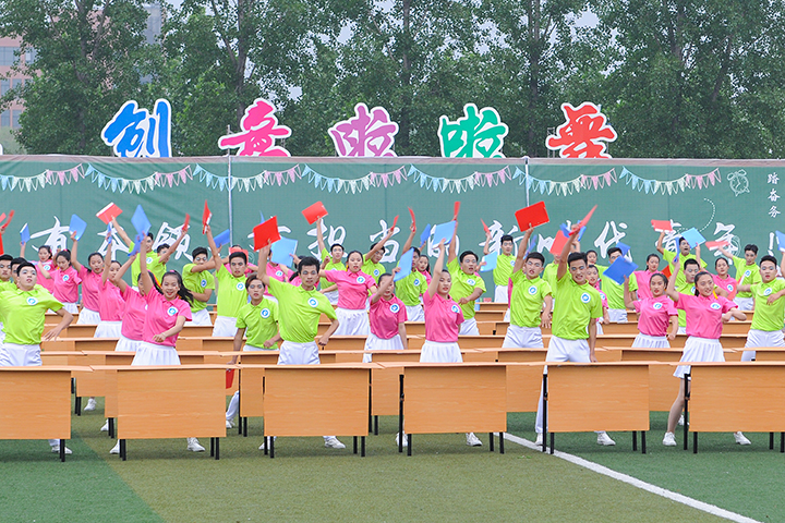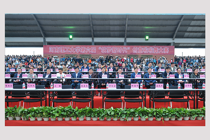 4月24日下午,我校第六届“筑梦新时代”创意啦啦舞决赛在西区体育场举行。校领导邹友峰、杨小林、安士伟、张锟、陈自录、赵俊伟、翟传森、解伟,知名校友和嘉宾姚晓峰、李战军、马桂霞、张福贵及焦作校友会、洛阳校友会代表等出席活动,各学院和相关职能部门的领导、老师与5000余名学生共同观看了比赛。