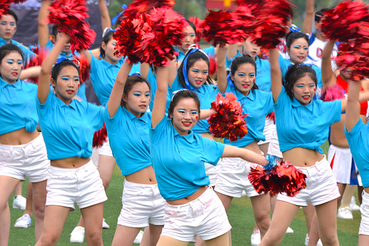 比赛现场青春激扬、精彩纷呈,跳动的音符在体育场上空回响,张扬的青春于创意舞蹈中展现。20支队伍将筑梦新时代的主题与深刻的思想内涵融入节目之中,实现了思想、创意与啦啦舞表演的完美融合。表演队音乐学院用专业舞蹈向观众演绎作品《文综六层》,用青春活力跳出舞者的自信。历史不能忘却,电气学院《为了忘却的纪念》以国家历史发展进程为背景,生动演绎了中国的苦难过去与新时期的富强繁荣。土木学院《中华手拉手》以舞蹈为载体,再现中华民族大家庭在民族复兴的大道上风雨同舟、并肩奋进的画面。医学院《中国,再出发》用独特的创意和舞蹈风格带给现场观众一场视觉盛宴,通过宏大场面与丰富情感感染了现场观众。应急学院《巾帼礼赞》再现中华优秀女性代表,鼓舞当代女性书写新时期的绚烂篇章。传承好学力行校风,弘扬勤勉求是学风,材料学院《学在理工·志在四方》用充满校园气息的场景和青春飞扬的舞姿演绎了莘莘学子对学习的热忱、对求知的渴望,表达了他们刻苦勤奋、不懈追求的精神,获得了评委和现场观众的热烈反响。比赛过程精彩不断,财经学院《舞领新时代》、安全学院《厉害了,我的国》、资环学院《中国梦,赤子情》、建艺学院《美丽乡村,建设有我》、机械学院《家国梦想》、能源学院《投身军旅,绽放青春》、物电学院《科技之旅》、外国语学院《美丽中国》、计算机学院《利刃出鞘》、化工学院《化梦为翼,工行青春》、工商学院《溯民族之源,圆时代之梦》、文法学院《百年峥嵘,梦在理工》、数信学院《乘风前行》、测绘学院《新时代、新青年、新征程》以深刻的思想内涵和舞蹈创意,跳出了青春活力,舞出了理工风采。