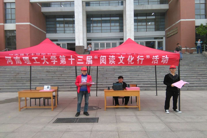 4月24日下午,由党委宣传部、图书馆、校团委和文法学院联合主办,学生图书信息工作委员会和大学生新曦文友协会共同承办的第十三届“阅读文化行”活动正式启动。本次活动将从4月持续至12月。图书馆联合机械学院青年志愿者协会在图书馆前世纪广场组织开展了相关宣传活动。