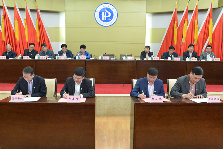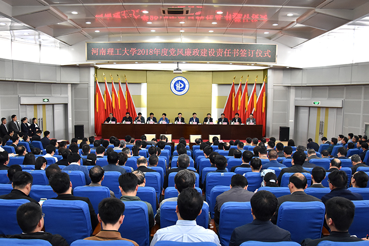 4月17日下午,学校在力行楼学术报告厅举行2018年度工作目标任务书暨党风廉政建设责任书签字仪式。校领导邹友峰、杨小林、卫中玲、安士伟、张锟、陈自录、赵俊伟、翟传森、解伟、赵同谦、翟耀南出席,全体处级干部,各学院党政办主任、专职特聘组织员等参加。签字仪式由校党委副书记卫中玲主持。