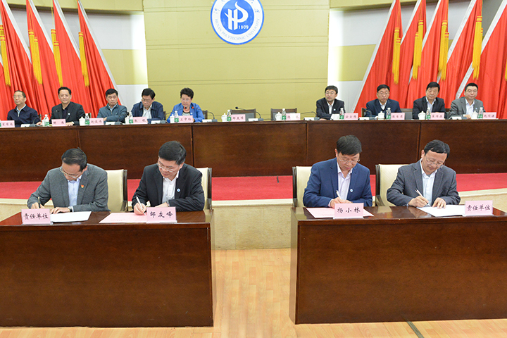 校党委书记邹友峰、校长杨小林与人事处、学生处负责同志签订任务书和责任书