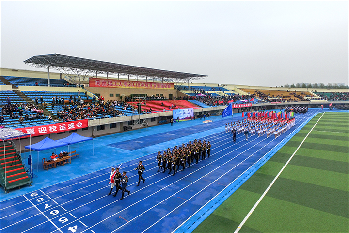 四月的理工校园,草长莺飞,一派生机盎然;雨后的运动场,体育健儿奋勇争先展风貌。4月14日上午,学校2018年体育节暨运动会在南校区东区运动场隆重开幕。