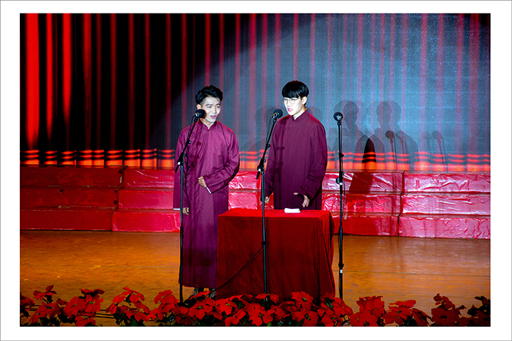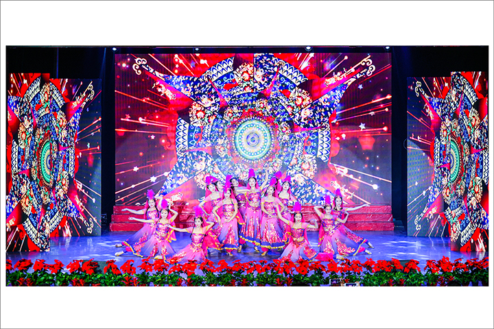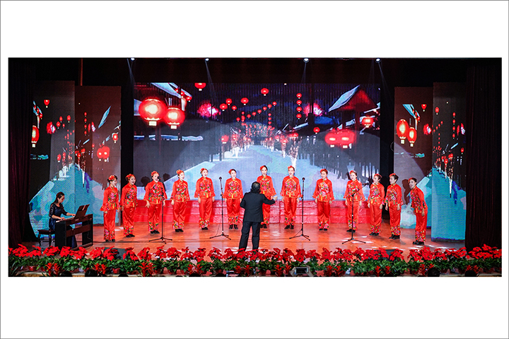 悠扬清脆的钢琴声传遍小礼堂的角落,深情的合唱《望月》《康定溜溜的城》拉开了新年联欢会的帷幕。活力四射的歌舞《快乐的节日》《幸福来》给现场带来无限激情,将快乐和幸福传递给每位观众。诙谐逗趣的相声表演《大学青春》使观众捧腹大笑,赢得欢声一片。歌曲联唱《父亲写的散文诗》《带你去旅行》和《重返十七岁》用深情的歌声牵动着观众的思绪。芙蓉含露时,秀色波中溢,舞蹈《芙蓉花开》为观众展现了女教师的别样风采。本次联欢会融入传统文化,豫剧选段《朝阳沟》《穆桂英挂帅》《包公》以铿锵大气的唱腔、纯美的韵味、精准的走位,生动展示了传统文化的魅力。来自老挝的留学生一出场便吸引了全场目光,秀美的舞蹈缱绻着祝福的情思在舞台上回荡,舞蹈《追姑娘》呈现着迷人的异国风韵。音乐学院的教师身着传统服饰,带来的小合唱《回娘家》将喜悦、团圆的节日主题表现得淋漓尽致,红红火火的舞台上洋溢着欢快的节日气氛。党的关怀使人民幸福,阳光雨露的滋润使花儿鲜艳,大学生艺术团带来的舞蹈《花儿》令观众大饱眼福。配乐诗朗诵《我骄傲,我是中国人》用激昂的语气激发起大家强烈的爱国情怀,恢弘的气势在小礼堂激荡。男高音歌唱家李新现的独唱《父亲》寄托了儿女对父母深沉的感恩和爱恋,赢得观众的强烈共鸣。在大家的盛情邀请下,他即兴演唱了国粹京剧《<红灯记>选段》。武术表演《太极神韵》将观众带入太极的世界,一招一式尽显理工学子青春朝气,博得了现场观众热烈喝彩。联欢会最后,由机关党委老师们带来的《感党恩,爱祖国颂歌》表达了全体师生员工爱国爱校、积极工作、乐于奉献的精神追求,在饱含爱国爱校的深情中拉下帷幕。联欢会融歌舞、戏曲、相声、武术、朗诵、合唱等多种形式,精彩纷呈、高潮迭起,为观众献上了一场视听的饕餮盛宴。
