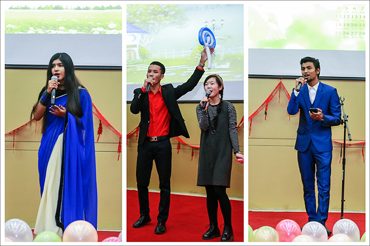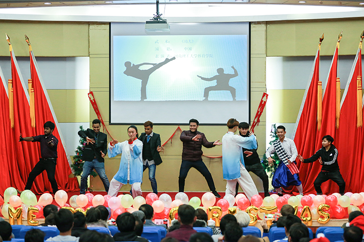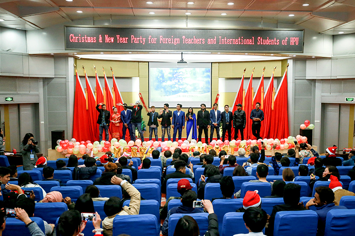 12月22日晚,由国际教育学院、国际合作交流处主办的“河南理工大学2017年外教和国际学生圣诞新年联欢晚会”在圆形报告厅举办。副校长赵俊伟出席,国际教育学院、国际合作交流处、计算机学院、土木学院、财经学院、体育学院、文法学院、数信学院、外国语学院的相关负责人参加了晚会。来自美国、孟加拉、老挝、巴基斯坦、印度、坦桑尼亚、埃塞俄比亚、赤道几内亚等22个国家的国际学生,全体外籍教师和部分中国学生代表近200人欢聚一堂,喜迎圣诞新年。