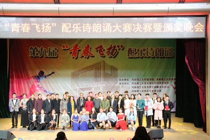 12月23日晚,由校图书馆、校团委主办,大学生时代潮文学社、大学生新曦文友协会、大学生军乐团共同承办的第九届“青春飞扬”配乐诗朗诵大赛决赛暨颁奖晚会在小礼堂举行。图书馆、校团委、党委宣传部、现教中心、学生处等职能部门和焦作市朗诵与语言艺术协会的相关负责人参加晚会并担任评委,500余名师生共同观看了比赛。