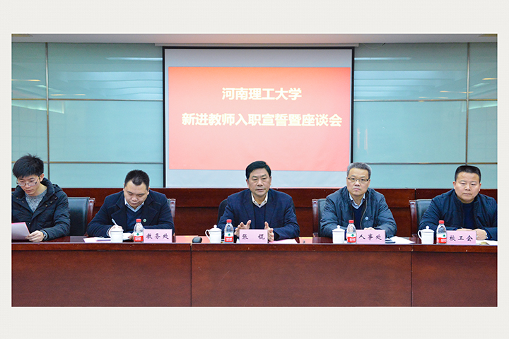 12月8日,我校在明德楼一楼会议室举办新教师座谈会暨入职宣誓仪式,副校长张锟及人事处、教务处、校工会、教师发展中心负责人和新入职的专任教师参加座谈会。