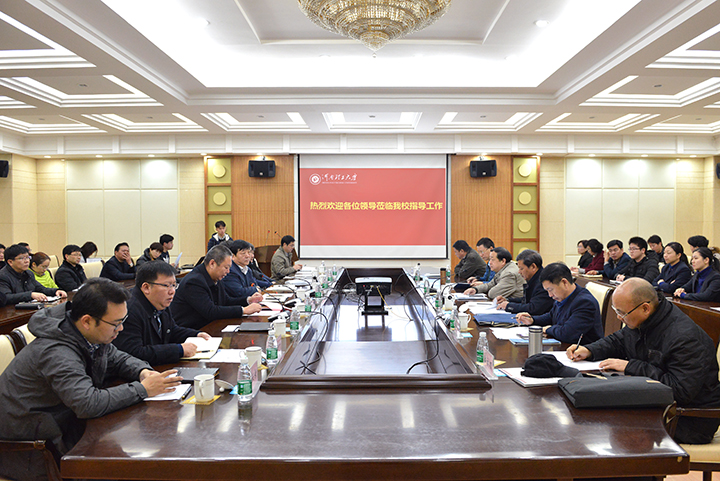 11月29日,河南省教育厅标准化学生公寓和标准化食堂评估验收专家组一行6人莅校进行评估验收。学校在力行楼方形会议室举行汇报会。考评验收专家组组长、河南牧业经济学院副院长程慎,专家组成员,省教育厅财务处王海燕、河南师范大学后勤管理处(服务集团)党委书记陈俊杰、河南科技大学后勤集团公司党委副书记兼副总经理张海、河南广播电视大学后勤处处长胡俊、信阳师范学院后勤服务总公司党总支副书记康伟、安阳师范学院后勤党总支书记秦方顺;我校副校长翟传森,后勤管理处(集团)、宣传部、学生处、校团委、财务处、基建处、保卫处等单位相关负责同志参加汇报会。会议由后勤集团公司党委书记王勇主持。