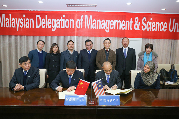 座谈会上,双方就将要开展的具体合作项目进行交流探讨,达成了诸多共识。双方同意开展短期师生交流互访,并尽快启动中国教育部认可的中外合作办学项目以开展长期合作,从而建立起“长短期相结合,双向交流访问”的合作机制。杨小林与舒克里·亚杰德分别代表双方,在与会领导的见证下,签订了《河南理工大学与马来西亚管理科学大学合作谅解备忘录》,并相互赠送了纪念品。