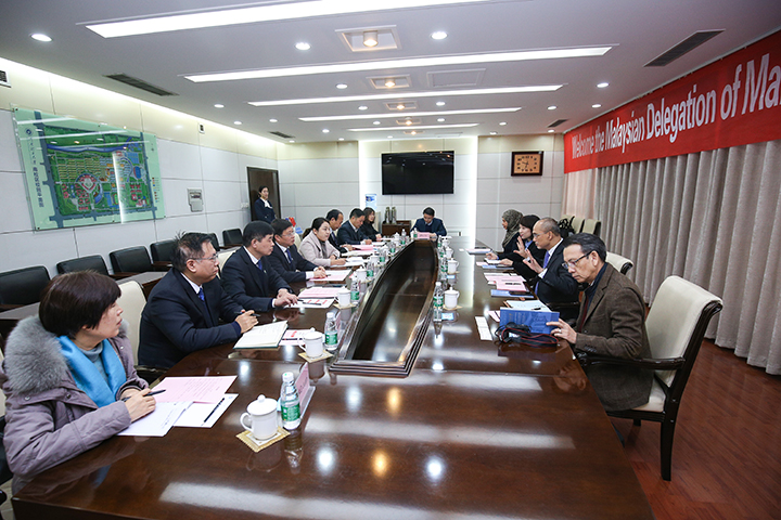 会上,杨小林致欢迎辞。他向访问团的到来表示热烈欢迎,并简要介绍了学校的历史沿革、办学特色、师资队伍、学科专业及硕博授权点建设等方面的基本情况,重点介绍了学校在管理、经济、医学学科的建设和发展情况。杨小林指出,马来西亚是“一带一路”沿线国家,管理科学大学又是马来西亚最好的私立大学之一,与我校有许多相同和互补之处,希望双方能够借着“一带一路”倡议的东风在医学、管理、经济学科领域开展广泛的教育交流合作,充分发挥两校的办学优势,实现互利共赢,开创两校合作交流新篇章。
