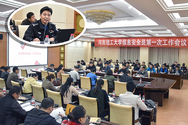 11月9日,由我校网络安全和信息化办公室主办的网络信息安全员第一次工作会议在力行楼会议室召开。会议邀请了焦作市公安局网警支队总工程师武胜利作报告,副校长赵俊伟出席了会议并发表讲话。学校各二级单位信息安全员、现教中心信息化建设骨干成员参加会议。学校网络安全与信息化建设办公室主任郑友益主持本次会议。