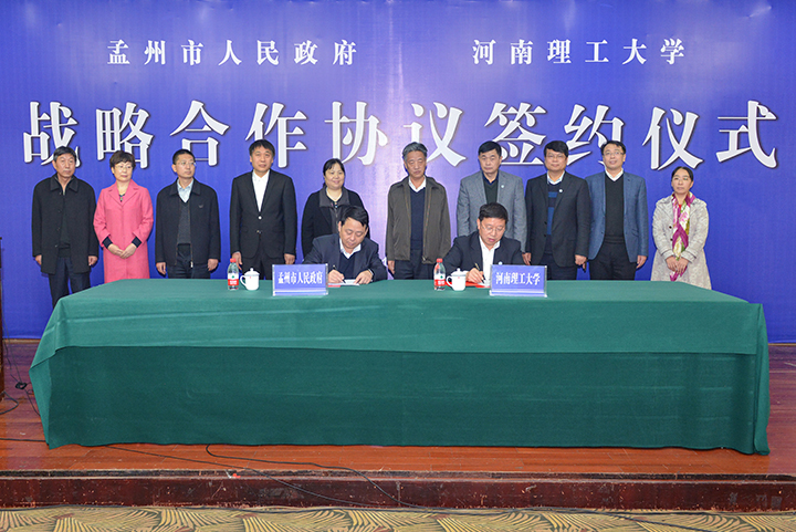 在与会领导、嘉宾的共同见证下,杨小林和卢和平代表双方共同在《战略合作协议书》上签字。会上,我校科技处副处长李振华发布了学校可供与孟州市对接的相关学科与研究方向、科技平台和代表性科研成果等信息。