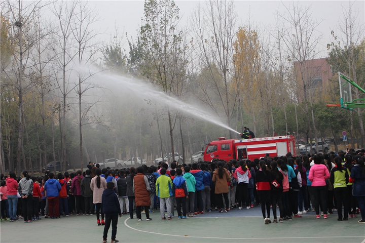 为了普及师生消防安全知识,提高师生安全意识,在学校发生火灾紧急情况时,全校师生能安全、快速地进行疏散,在保卫处消防科和附属小学的共同策划和严密部署下,近日,附属小学组织全校师生开展了一次消防疏散、灭火器灭火、水带灭火及高空水炮灭火演练。