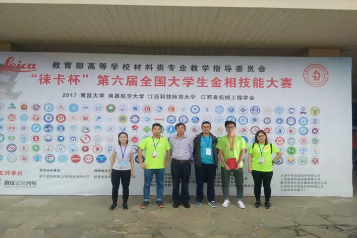 10月9至13日,由教育部高等学校材料类专业教学指导委员会主办,南昌大学联合南昌航空大学、江西科技师范大学承办的“徕卡杯”第六届全国大学生金相技能大赛在南昌市举行。我校材料学院教师张志、许磊带队指导的2014级金属材料、材控专业的3名同学组成的团队首次参赛,与来自清华大学等全国167所高校、约500名选手同台竞技。最终我校同学陈宁波获三等奖。