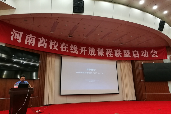9月26日,河南高校在线开放课程联盟启动会在郑州大学隆重召开,教育部全国高等学校教学研究中心、省教育厅高教处领导出席会议,外请专家以及全省高校代表共200余人参加会议。我校作为理事单位联合发起河南高校在线开放课程联盟,教务处处长沈记全等一行3人应邀参加会议。