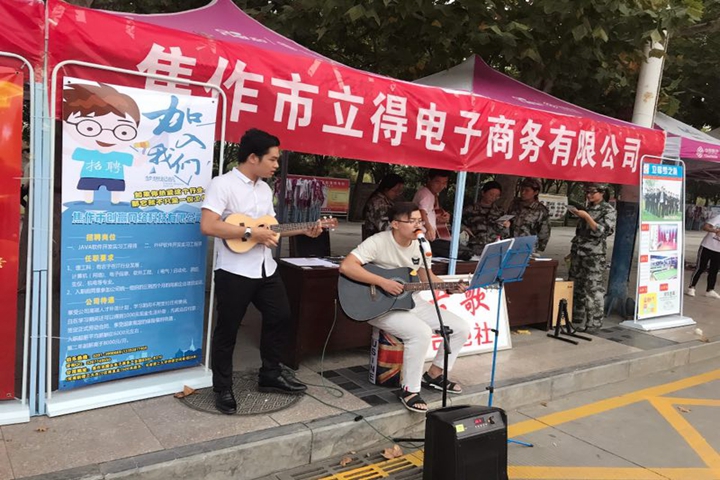 学生创业团队在演唱推介