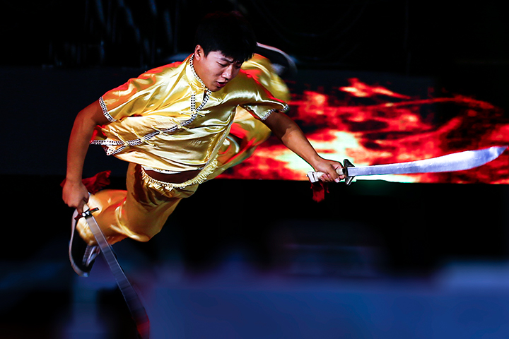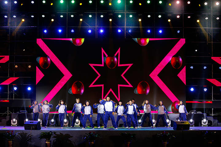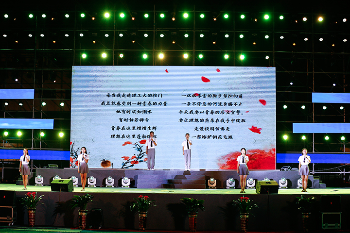 晚会中,学校领导和音乐学院合唱团共同倾情演唱了河南理工大学校歌,雄浑的歌声传达了全体教职工对莘莘学子的浓浓希冀,副校长赵俊伟与现场新生亲切互动,即兴演唱《母亲》,情真意切,高亢嘹亮,引来现场热烈掌声;音乐学院院长李新现演唱的《父子》和《儿行千里》直叩心灵,表达了深厚的父子之情和游子在外的父母的牵挂,引起了全体共鸣;武术表演《谁与争锋》充分展示了中国武术的阳刚之美和太极拳的刚柔相济,给全体新生展现了我校太极拳运动的优良传统;校街舞表演队的《街舞青春》展示了学子们从高中到大学的心路历程,表达了对大学生活的好奇与憧憬;军训团教官带来的歌舞表演《战斗宣言》,唱出了铮铮男儿气魄,打出了保卫国家的气概;机器人表演《电燃青春》将学生科技创新和机械舞表演生动结合,显示出了强烈的科技感和对未来的求知欲。《和我一起唱》《时间都去哪了》《追梦赤子心》等歌曲为观众带来了涤荡心灵的优美歌声;诗歌朗诵《青春理工》诵出了理工学子的奋发图强、自强不息,诵出了理工大的悠久历史和青春活力;音乐快板《最美中国梦》以独特的旋律唱响了最美中国梦,表达了对祖国和十九大顺利召开的美好祝愿;最后,晚会在百年校庆主题歌舞《青春百年》中落下帷幕。