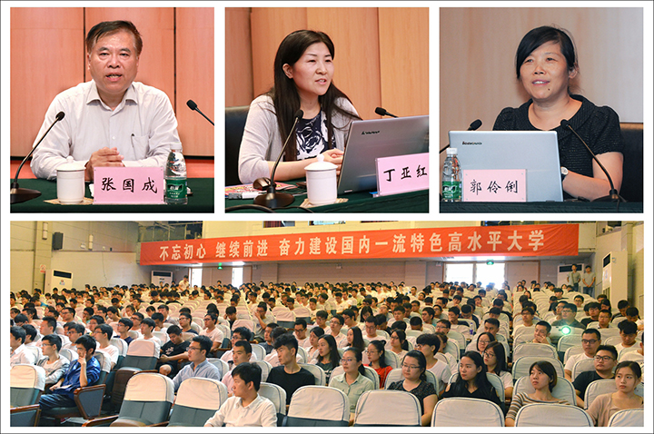研究生院院长兼党委研工部部长张国成就学校历史、研究生发展现状、学校重大研究成果及研究生教育教学改革、科学道德与学风建设等内容做了精彩报告。他鼓励大家要不断进步,丰富自身,让自己成为有收获、有修为、有真本事的人,他希望各位研究生多看书,不断创新,博采众长。研究生院副院长丁亚红分别从研究生教育概况、研究生学制和培养环节注意事项3个方面对我校研究生教育及培养环节进行了介绍。王伟超向大家讲解了我校研究生的奖助政策和我校研究生学术文化品牌及日常管理中有关注意事项。