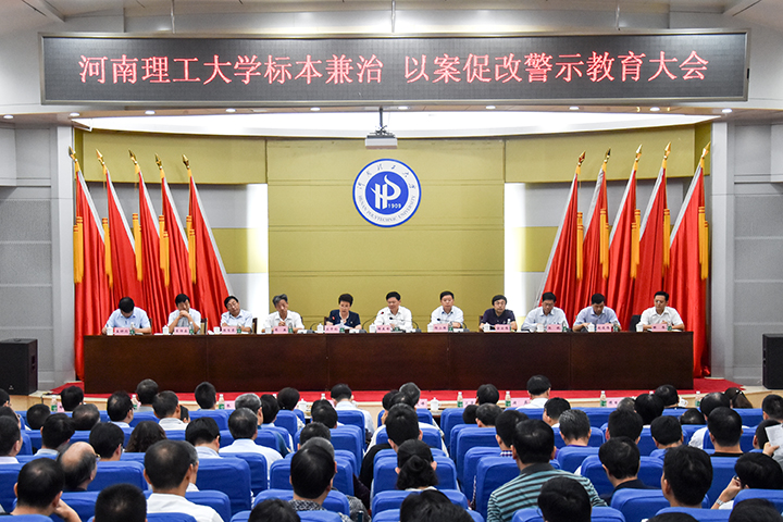 9月3日下午,学校在南校区力行楼学术报告厅召开坚持标本兼治、推进以案促改警示教育大会。校领导邹友峰、杨小林、卫中玲、安士伟、周英、张锟、陈自录、赵俊伟、翟传森、解伟,校长助理孟钟剑出席。校党委副书记卫中玲主持会议,并代表学校党委就巩固宣传动员和剖析整改阶段工作成果,深入推进坚持标本兼治、以案促改工作提出明确要求。