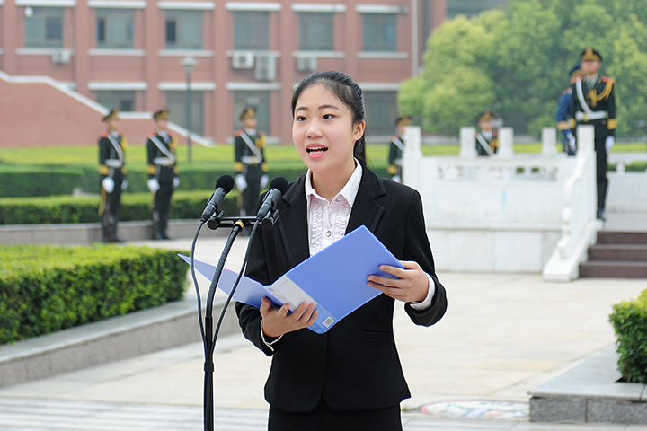 物电学院学生职文珂在发言中向全校老师致以节日的祝福,并倡议同学们在新学期要坚定理想、爱国奉献,励志读书、勤学修德,敢于担当、不负使命。