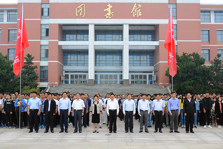 9月4日,我校在南校区中心广场隆重举行新学期开学升国旗仪式。校领导邹友峰、杨小林、卫中玲、安士伟、周英、张锟、陈自录、赵俊伟、翟传森、解伟,校长助理孟钟剑出席升旗仪式。全体处级干部、专兼职辅导员和各学院学生代表3000多人参加仪式。仪式由学生工作部(处)部(处)长黄保金主持。