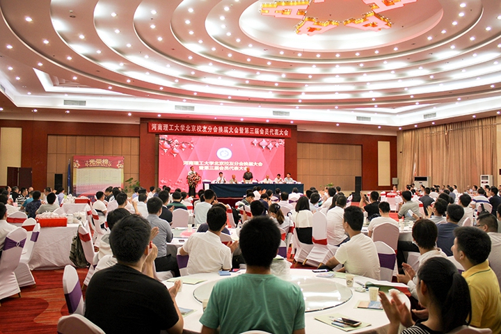 8月26日,北京校友会换届大会暨第三届会员代表大会在北京黄河京都会议中心隆重召开,校长杨小林,原焦作工学院党委书记石廷轩、院长袁世鹰,副校长赵俊伟、校长助理兼校长办公室主任孟钟剑,第二届北京校友分会会长尚海涛及北京校友代表共计300余人参加了会议,湖北校友会副会长陈启咏到会祝贺。大会由第二届北京校友分会副秘书长朱拴成主持。