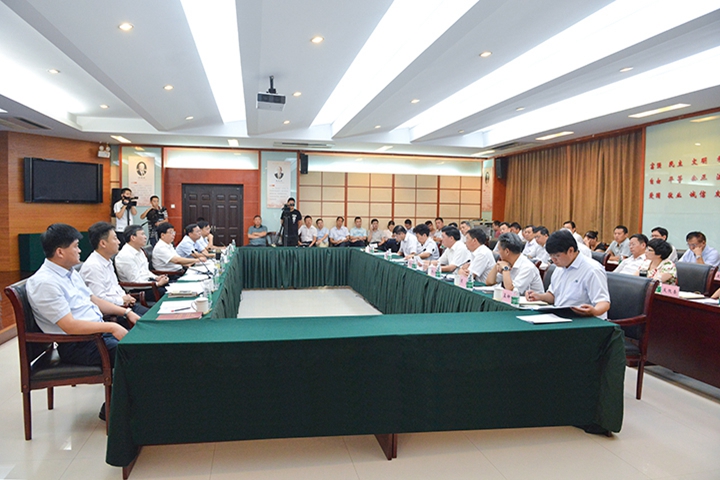 8月26日上午,焦作市委书记王小平、市长徐衣显率队莅临学校,在南校区明德楼一楼会议室就河南理工大学科技园项目建设召开现场办公会。焦作市领导王小平、徐衣显、杨青玖、乔学达,市城乡一体化示范区党工委书记李平启、管委会主任陈湘,校领导邹友峰、杨小林、卫中玲、周英、赵俊伟,校长助理孟钟剑出席会议。会议由焦作市常务副市长杨青玖主持。