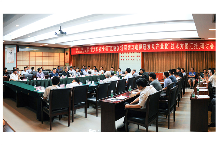 8月22日下午,由焦作市和我校共同举办的市重大科技专项“磁悬浮多轿厢直驱电梯”技术方案汇报研讨会在我校明德楼一楼会议室召开,副校长周英,焦作市人民政府副秘书长栗爱民、市示范区副主任姜坤峰、武陟县县长秦迎军、市科技局副局长张王成等市县区领导,我校原党委书记、原校长袁世鹰,校长助理孟钟剑等出席会议,科技处处长赵同谦、大学科技园董事长王永保、机械学院院长荆双喜、电气学院院长王福忠,直驱电梯研究院院长汪旭东、副院长许宝玉等参加会议,来自全国各地的业内专家学者、电梯行业、企业代表,市科技局、示范区部门负责人等40余人参加了研讨会。会议由孟钟剑主持。